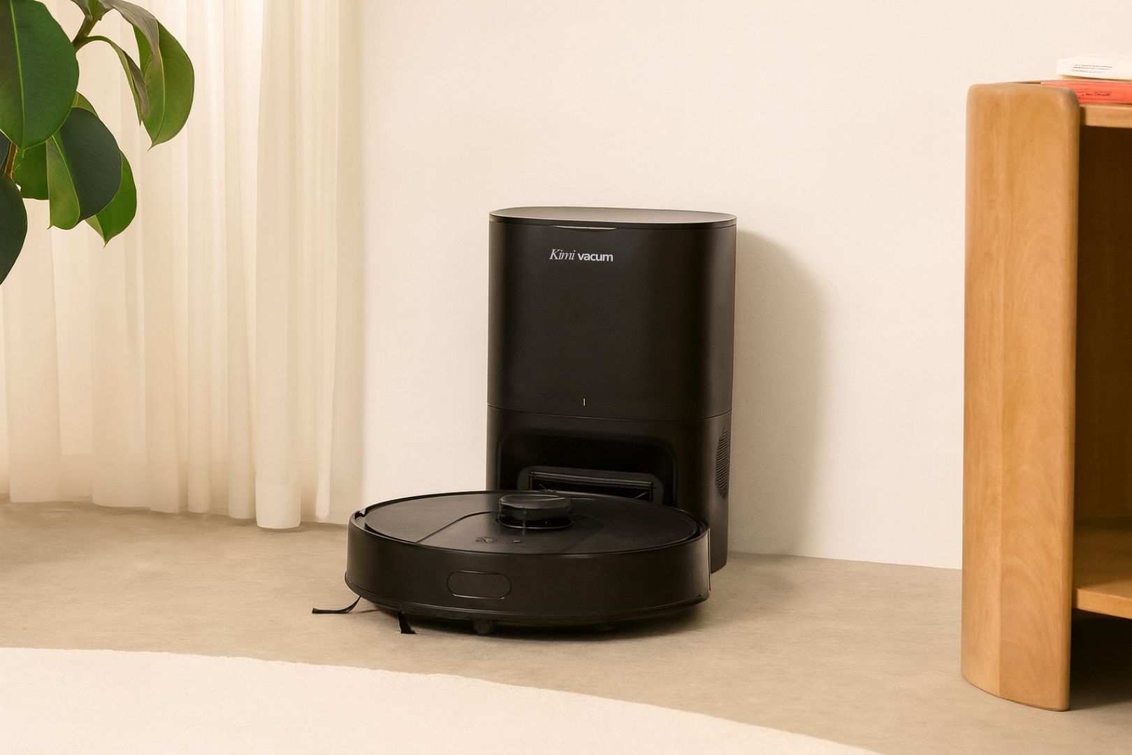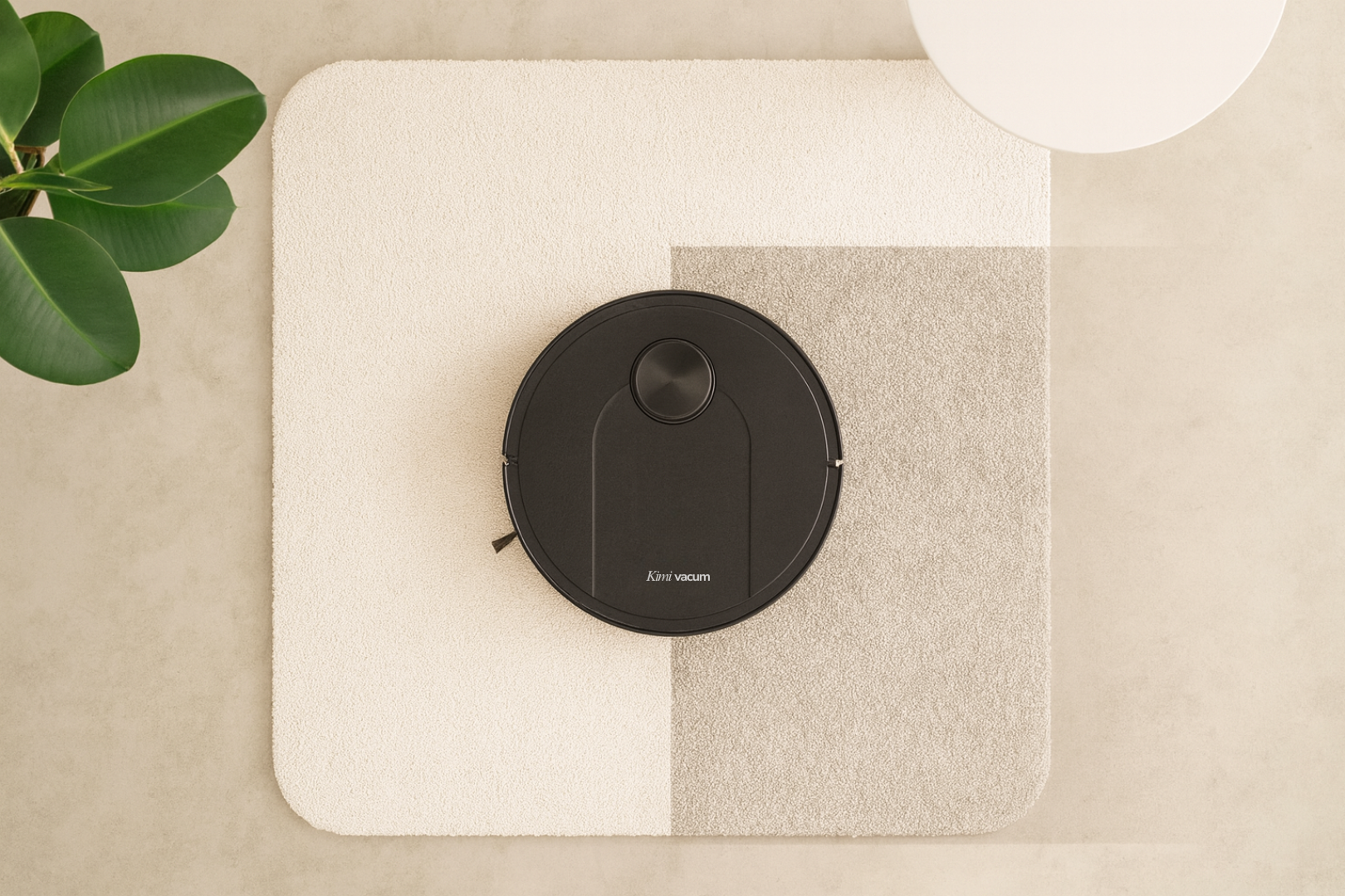 Fini les appareils encombrants et bruyants. Kimi Vacum s’intègre dans votre intérieur avec élégance, nettoie sans déranger et se recharge automatiquement. Il travaille pour vous, sans perturber votre quotidien.